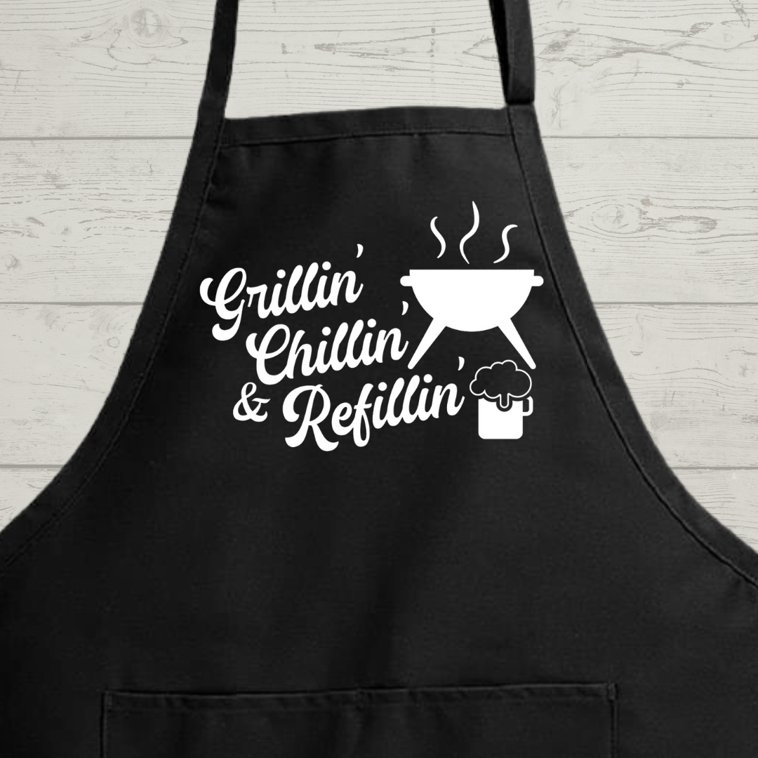 Funny Men's Apron - Grillin' Chillin' and Refillin' - Hilarious BBQ Apron"